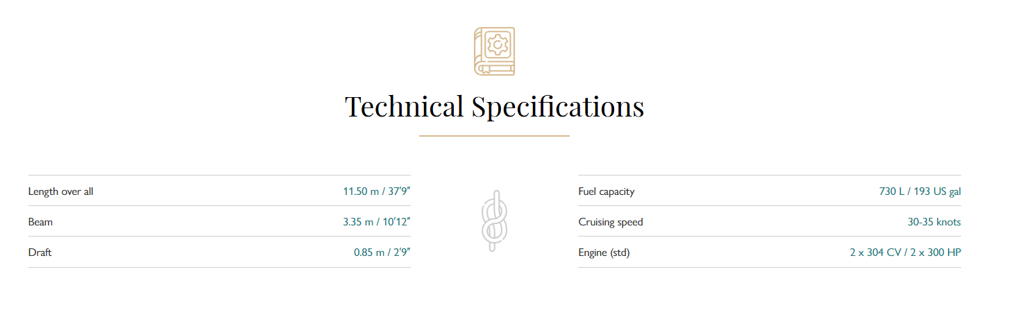 Two outstanding cabins allow you to enjoy your trip with up to 10 guests on board. Its sleek modern design doesn't compare to what one might imagine a speed boat to look like.